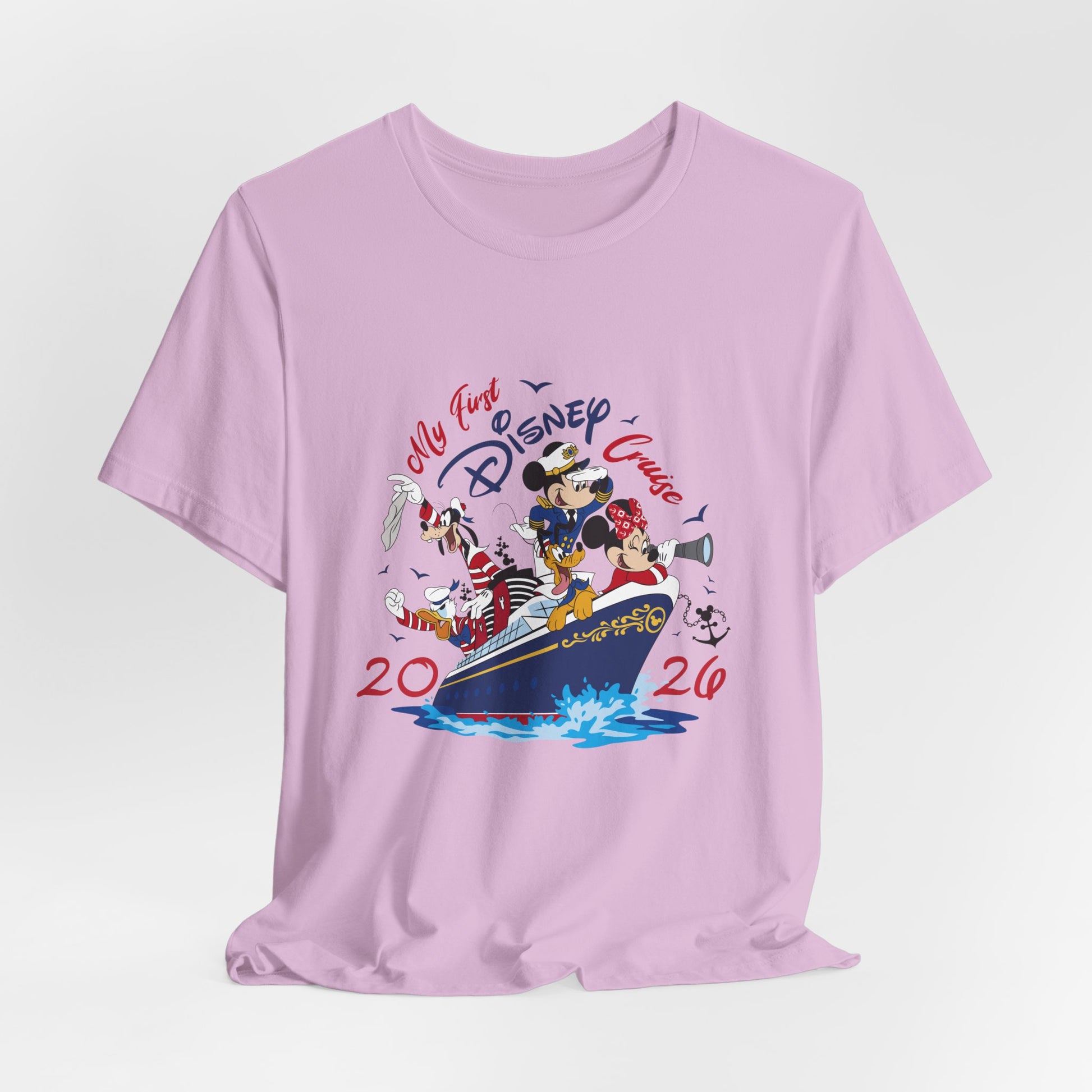 Our My First Disney Cruise Shirt features adorable Disney-inspired nautical designs, including Mickey, Minnie, cruise ships, anchors, and ocean themes. Crafted from soft, breathable cotton or a premium cotton-blend, it keeps little cruisers comfortable while exploring the ship, meeting characters, and enjoying magical moments at sea.